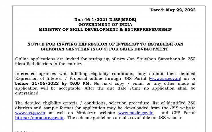 Paschim Banga Society for Skill Development(PBSSD) under Department of Technical Education, Training and Skill Development(TET &SD),invites proposals from experienced Training Providers already working under DDU-GKY/PMKVY/Sagarmala schemes in India for empanelment with PBSSD as an agency for imparting skill development interventions under State Specific schemes of